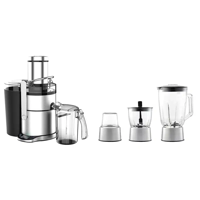 دارای 4 عملکرد: آبمیوه گیری، مخلوط کن، خردکن و آسیاب